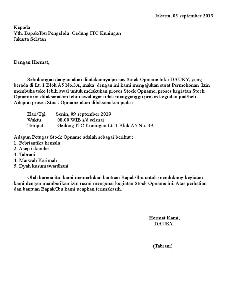 Surat Permohonan Izin Stock Opname Pdf